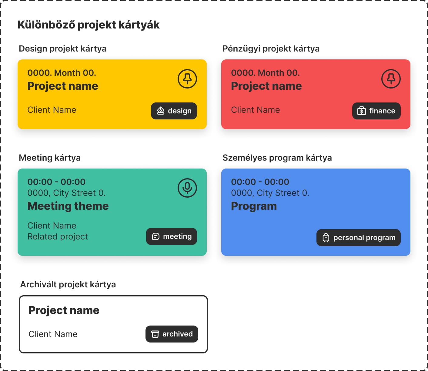 hogy az egyes fajta projekt kártyák és azok fázisai jól elkülönüljenek.